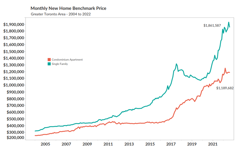 由加息引发的加拿大房地产市场低迷已经冲击到新房市场,根据建筑业和土地开发协会(BILD)的报告,8月份的新建公寓和独立屋销量较去年水平暴跌逾80%,远低于10年平均水平。不过,房价继续上涨。新建独栋住宅,包括独立屋、半独立屋和镇屋的基准价格达到约$186万元,比2021年8月高出22%。新建公寓价格同比上涨11%,达到近$119万元。