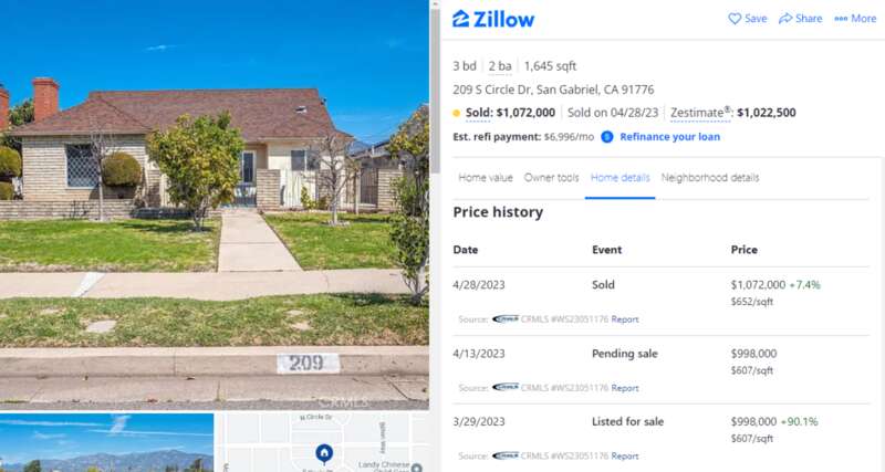 而在圣盖博的这套面积1645平方英尺的房子也是一样,挂牌价为99.8万美元,实际成交价为107.2万美元,加价幅度也达到7.4万美元。所以,各位华人朋友,如果只想居住在华人区,付出的代价会比以往都高,如果不想要竞价买房,可以考虑离开华人区,只是生活可能会有一些不便利。(