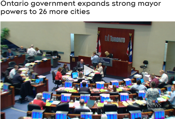 福特政府将在短短两周内将强市长权力扩大到近30个城市。万锦、列治文山、旺市、汉密尔顿、尼亚加拉大瀑布、巴里和宾顿等26个城市的市长将获得更多的权力。加拿大安省住房厅长克拉克(Steve Clark)表示,这些城市的市长权力将于7月1日开始。