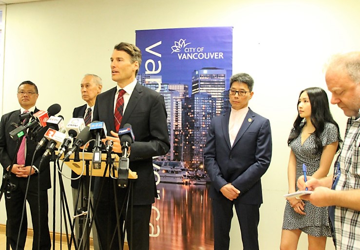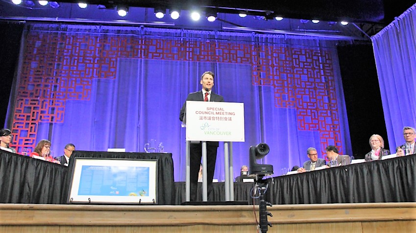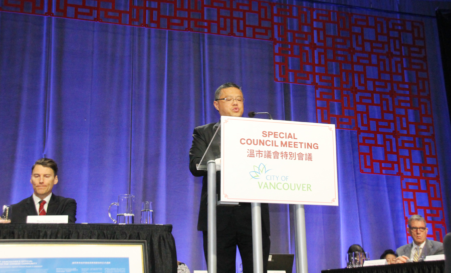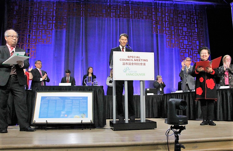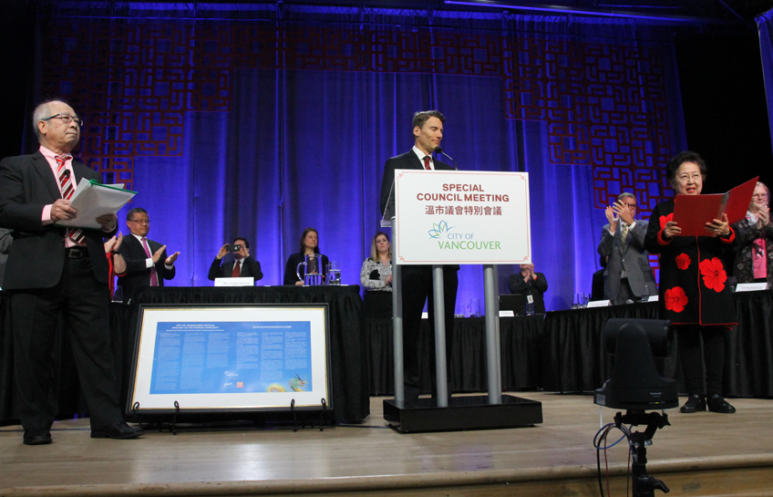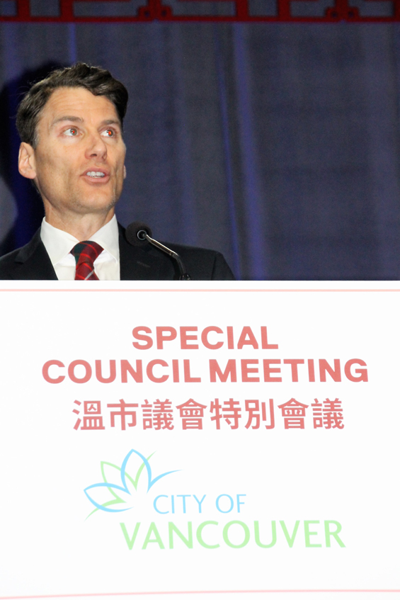 (本报讯)记者韩冰报道,4月22日下午2时,温哥华市议会在大温哥华中华文化中心礼堂举行公开道歉特别会议,温哥华市长罗品信(Gregor Robertson)代表温哥华市议会,在超过500名现场嘉宾面前为过往歴史上对华人的歧视向温哥华华人社区正式道歉。