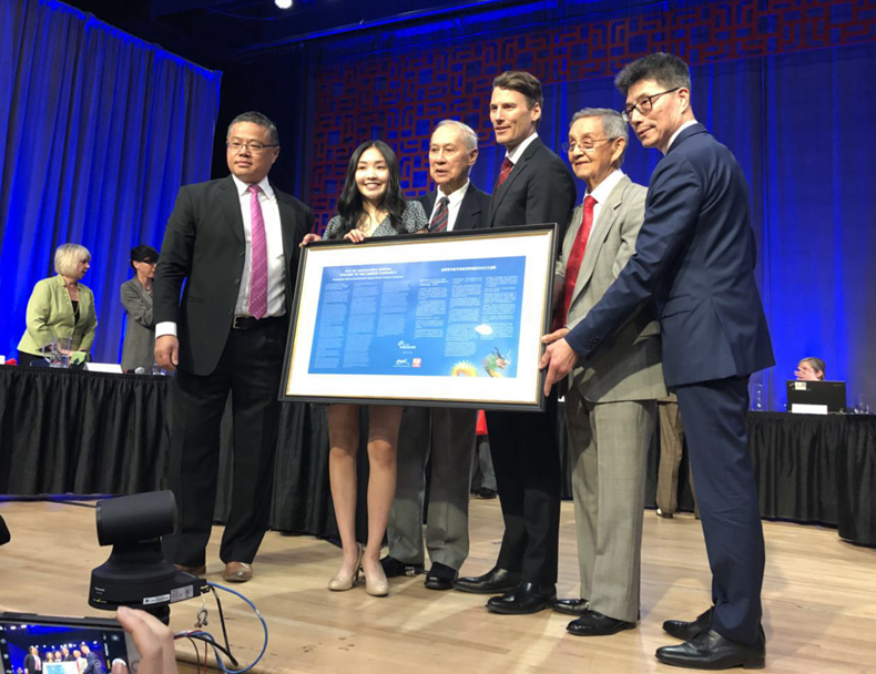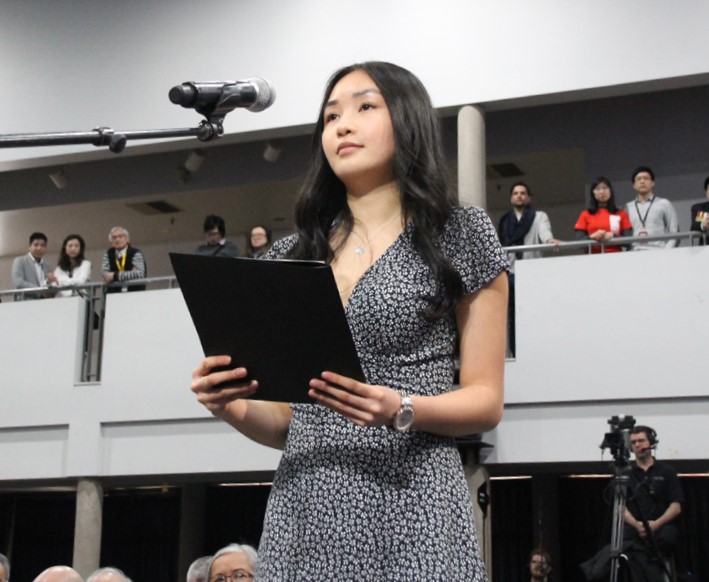蔡珍仪代表年轻世代和自己的家庭发表感言。