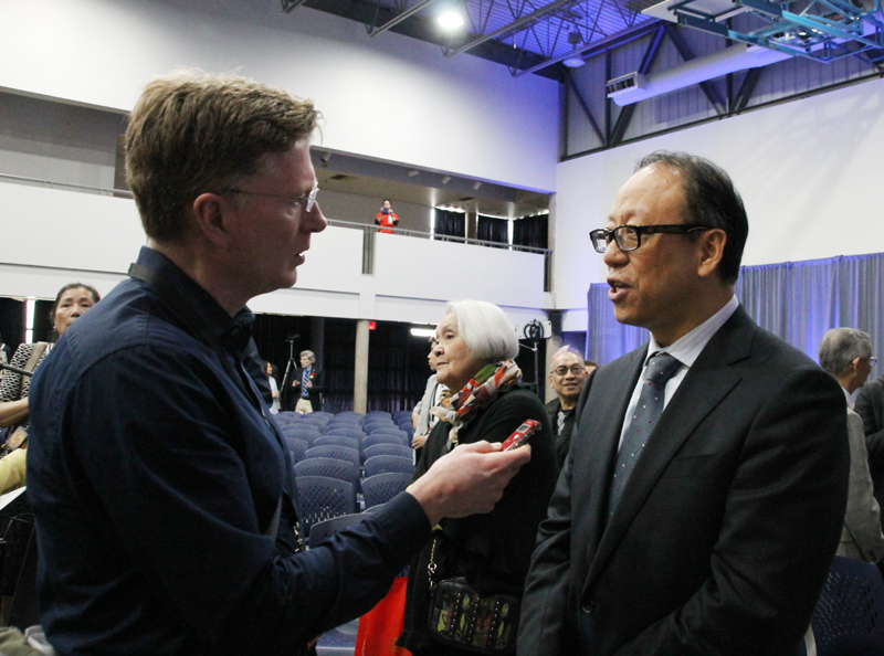特别会议结束后市长罗品信、市议员雷建华和三位社区代表接受媒体访问。
