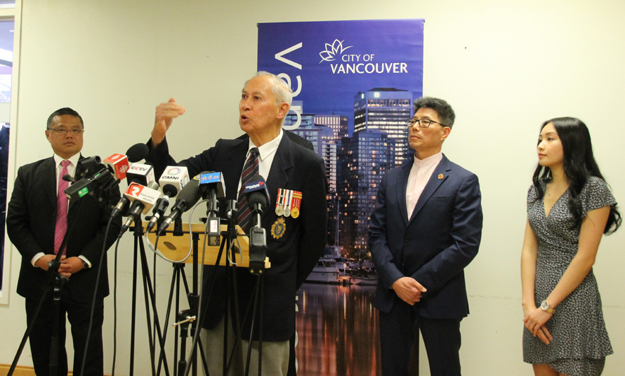 来自温哥华华人社区的老中青三代代表人士:退伍军人代表吴英超、温哥华中华会馆理事长姚崇英、年青人代表蔡珍仪也在仪式中发言,表达温哥华市议会的道歉对华人社群有多重要。