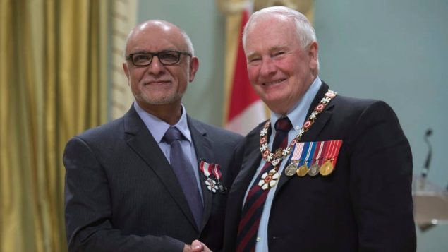 拉瓦里耶(左)2016年获得加拿大勋章(CP/ Adrian Wyld)