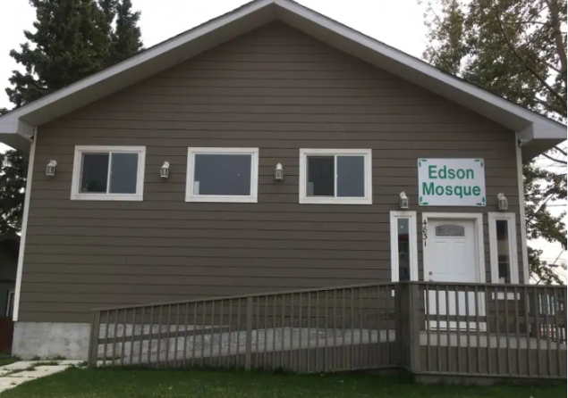 小镇位于埃德蒙顿以西约200公里。事件发生在星期六晚间。当天因为是开斋节第二天,晚上仍有穆斯林的祷告活动。 但就在23点左右人们刚出来后不久,还没离开停车场,就见清真寺的南门处起了火。
