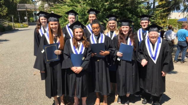 温哥华今年有一名特别的高中毕业生与其他毕业生站在一起,特别不同, 因为她是一位92岁的老奶奶。