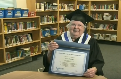 Joan Deebank向记者展示她的毕业证书(CTV)