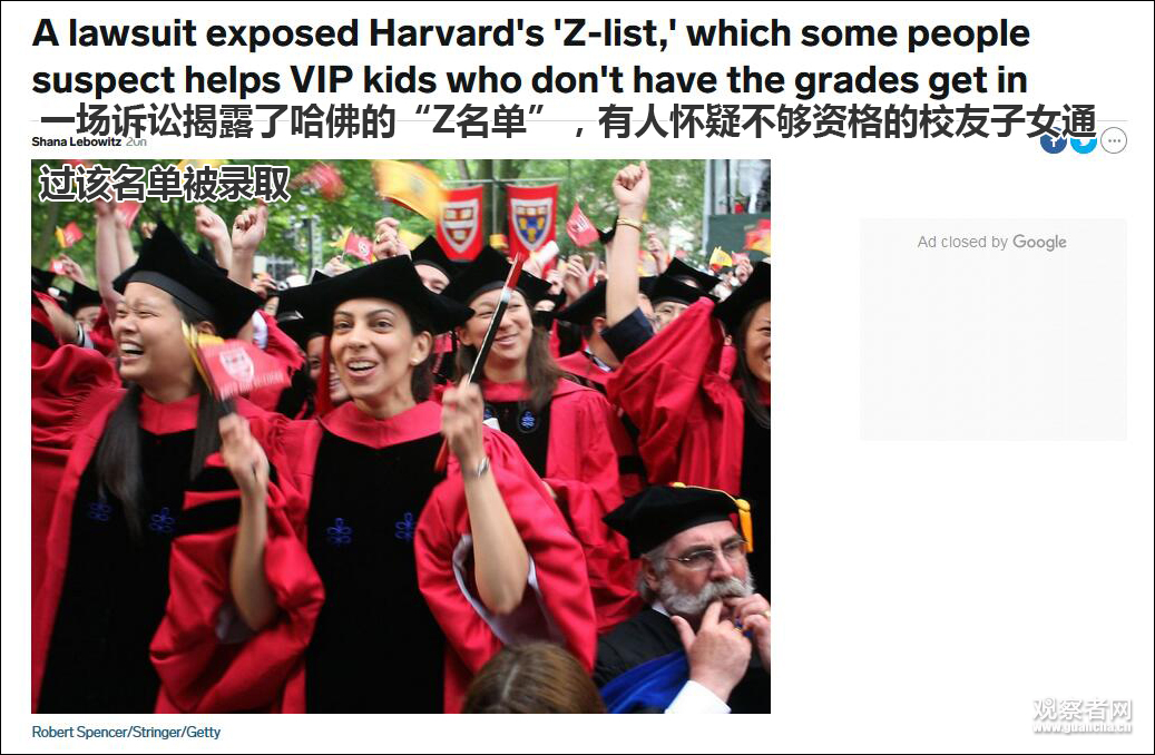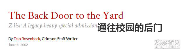 《商业内幕》消息称,哈佛大学是全美最难进入的大学,录取率只有5%左右。 2002年,由哈佛学生独立运营的《哈佛深红报》曾收集2001年至2002年“Z名单”上约80人中36人的信息,发现26人(约72%)都是哈佛校友的子女,而所有被录取的学生中只有12-14%是校友子女。![]()