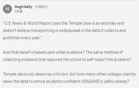 “US.New 声称,坦普尔大学数据造假是个例,不可能普遍都存在虚假上报。可是这种说法有什么证据呢?用同样的收集方法让学校上报自己的问题么?