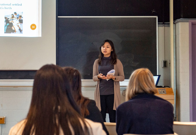 上图:香港駐多倫多經濟貿易辦事處(香港經貿處)副處長曾菂怡於二○一八年九月二十四日主持在多倫多大學舉行的資訊講座。?