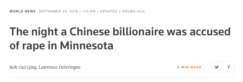 9月24日,路透社发文报道了那位指责刘强东性侵的女生在事发当晚与同学交流的微信内容,并且在文中详细梳理了当晚的一些细节。