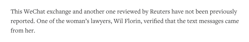对于这些此前从未经其他媒体报道过的微信内容,当事女学生的一名律师威尔·弗罗林(Wil Florin)证实,确为该女生所发。