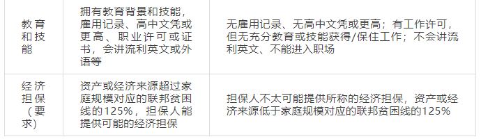 注:根据国土安全部《拒绝入境公共负担因素》规定整理而来。