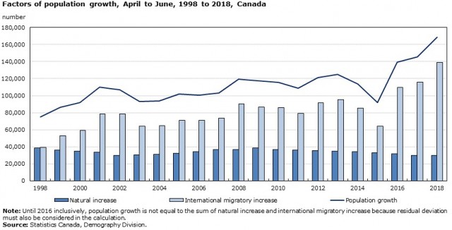 加拿大统计局表示,2018年第二季度加拿大人口增长为168,687人,而移民占到了其中的82%,一共有超过13万的移民来到了加拿大,移民是创造上一季度人口增多的最大因素。这也是1971年以来,加拿大移民人数最多的一个季度。联邦自由党政府3年移民百万的目标正在一步步变为现实。2018年预计大约有3.3万名中国新移民登陆加拿大
