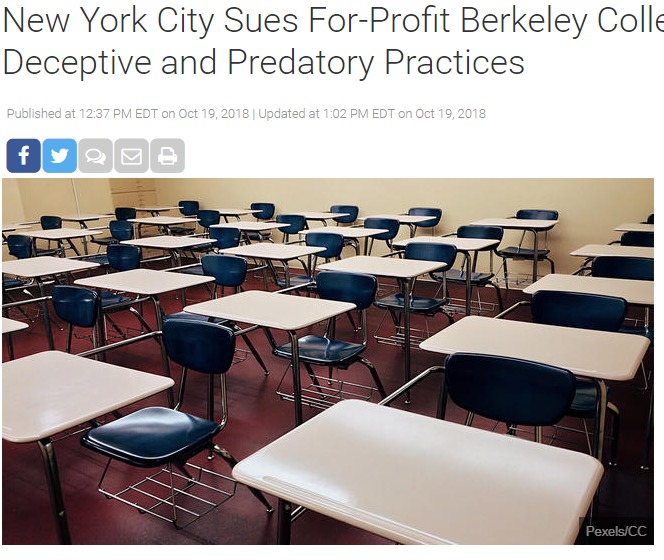市消费者事务局局长莎拉斯(Lorelei Salas)19日宣布,纽约州高等法院对伯克利学院提出诉讼,指该学院违反了多项消费者法,“营利性大学更像是一门生意,就像大多数生意一样,他们的首要目标是赚取利润”;招生人员为了吸引更多学生入读,专门灌输学生想听的信息,尤其是联邦学生补助、转学学分、毕业后就业等内容,将并不属实的内容告诉学生入学,很多学生也听信了招生官的虚假信息。