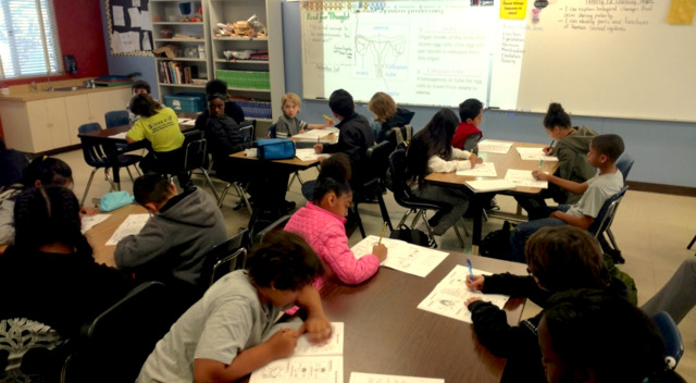加州奥克兰公立校区(OUSD)举办「性教育周」,一班刚踏入青春期的学童,初次公开和老师讨论性器官等话题,表现既好奇又尴尬。