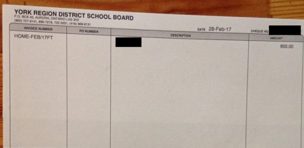 Invoice from YRDSB to homestay provider. (Provided by Xiu Chen )