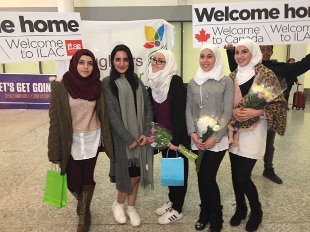 5名叙利亚女生去年抵达多伦多时受到欢迎 / Natalie Nanowski/CBC