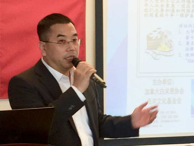 马社长作为移民18年的老移民,多年来坚持不懈为华人发声,积极参与华人在大温地区的诸多活动,经历了华人的社会地位的变化。马社长从1788年华人来到加拿大,以及后来的淘金、修筑太平洋铁路的历史说起,到最早的加拿大华人国会议员、总督、省督,一代一代华人的奋斗,为社会做出的贡献,鼓励大家正确认识华人在加拿大发展历史上发挥的重大作用,真正把自己当作社会的主人,积极参与小区和国家建设,为维护正当权益积极发表自己的意见。