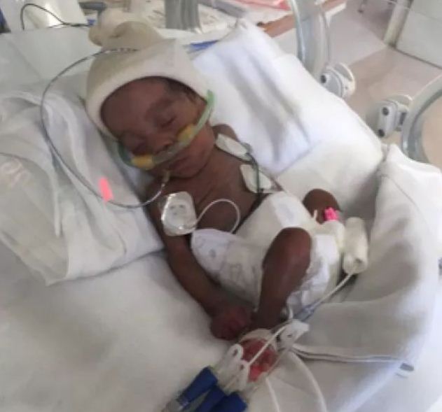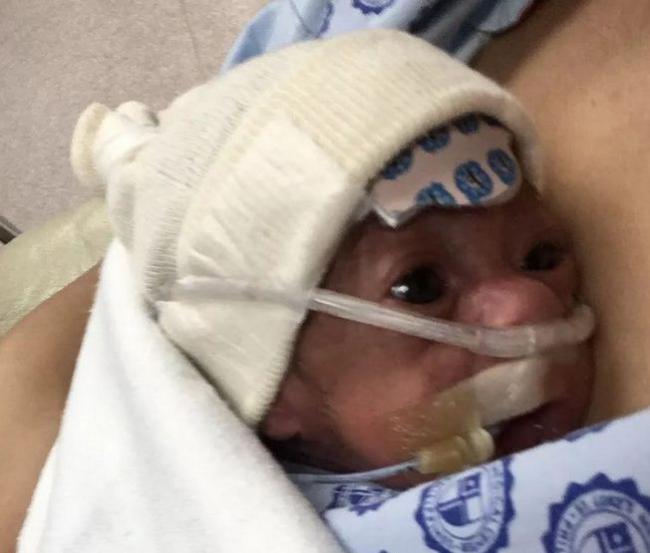 而他们的女儿麦迪森·梁(Madison Sarah Hilario Leung)就在这个时候降生了,比预产期提前了足足4个月,也就是怀孕24周出生,出生时,体重只有1磅,眼睛还未睁开,就胃部感染,肺部发育不良,需要监视器、呼吸机和输血装置才能维持生命,在医院期间其护理也在不停变化。