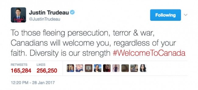 (杜鲁多总理今年初还发布推特称欢迎各种难民)