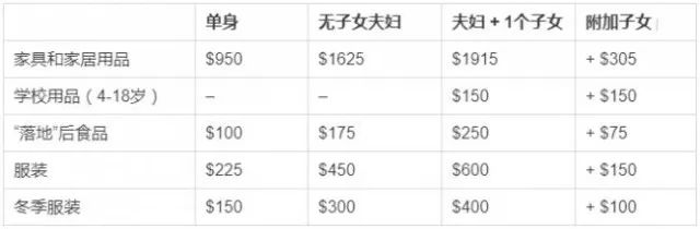 每月津贴(加元,难民抵达后第1年发放,若难民找到工作则停止)