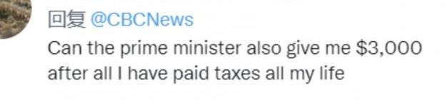 早前,加拿大给乌克兰人发放过一次性救助金,被加拿大纳税人疯狂diss。“这辈子为政府交了这么多税,啥时候政府能够给我发三千块呢?”