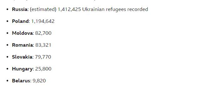 在战争爆发的时候,加拿大非常善意地宣布,优先处理乌克兰的签证申请,给他们《紧急旅行授权书》,即所有乌克兰难民可以前往加拿大。听起来确实是非常大方,但真正能落地生存下来的乌克兰人是很少的,除非后续加拿大政府继续无休止撒钱。截至目前,至少有1200万乌克兰人逃离自己的国家,然而,真正落地加拿大的只有5.5万。比起加拿大,乌克兰人更喜欢投奔欧洲邻国。目前乌克兰人的收容国家主要为俄罗斯、波兰、摩尔多瓦共和国↓