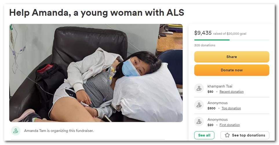 Tam为自己创立了GoFundMe的捐款页面,计划众筹2万。截至发稿前,已筹得$9435。