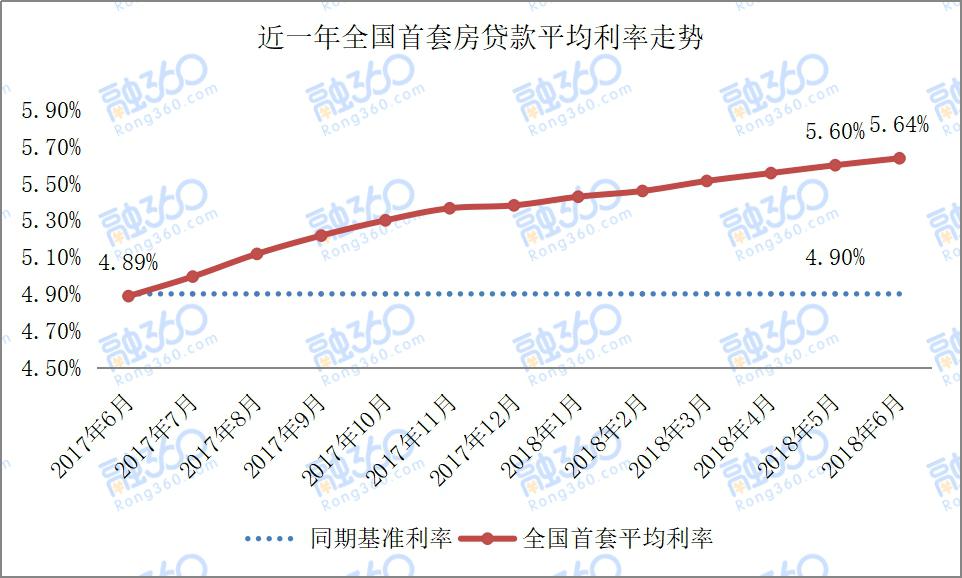 融360今年7月发布的中国房贷市场报告显示,6月,全国首套房贷款平均利率为5.64%,相当于基准利率1.151倍,环比5月上升0.71%,同比去年6月首套房贷款平均利率4.89%,上升了15.34%。截至6月,全国首套房贷利率已经连续18个月上涨。