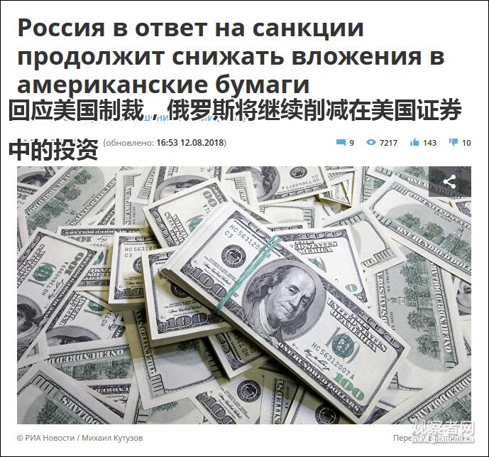 西卢阿诺夫在节目中说,“我们已经将对美国经济和美国证券的投资降到最低水准,并且还会进一步减持。”