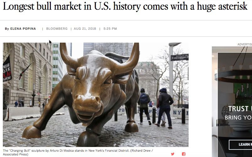 华尔街日报报道中称,很少会有投资者押注美国历史上最长的牛市会在2008年金融危机后开始。10年前,美国著名投银贝尔斯登和雷曼兄弟崩溃,美银美林等知名机构也在市场压力下被出售。许多分析师和投资者当时认为,尽管大盘较金融危机发生前的18个月下挫了超过40%,但美股还将继续大跌。