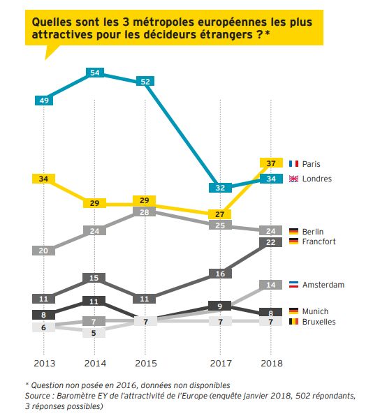 世界四大会计师事务所之一的安永?(Ernst & Young)?,日前发布了《2018法国吸引力晴雨表》(Baromètre 2018 de l’attractivité de la France),报告对欧洲502个行业领袖展开的调查显示: 73%的受访者表示,欧洲是全球最具投资吸引力的地区,远超过了亚洲和北美。