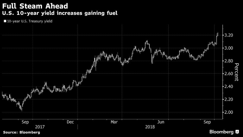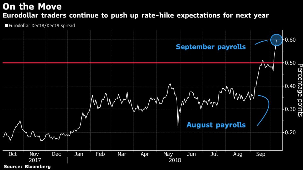 今年8月、9月美国非农数据发布后美债收益率飙升(图片来源:彭博社)