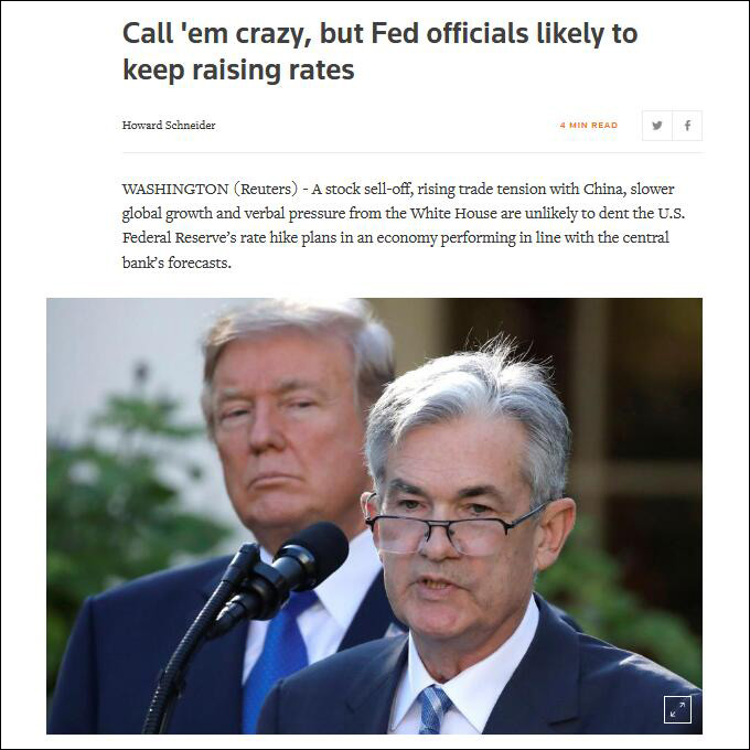 甚至特朗普的首席经济顾问库德洛(Larry Kudlow)也表示,他认为美联储“目标正确”,其加息能力是经济健康的标志,这值得欢迎,而不是可怕的。