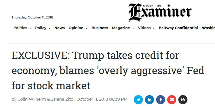 据华尔街见闻报道,11日在接受福克斯电视采访时,特朗普称,“我认为这次股市的修正是由美联储造成的。美联储的政策太紧缩了,他们正在犯下大错误。美联储有点聪明过头了。”