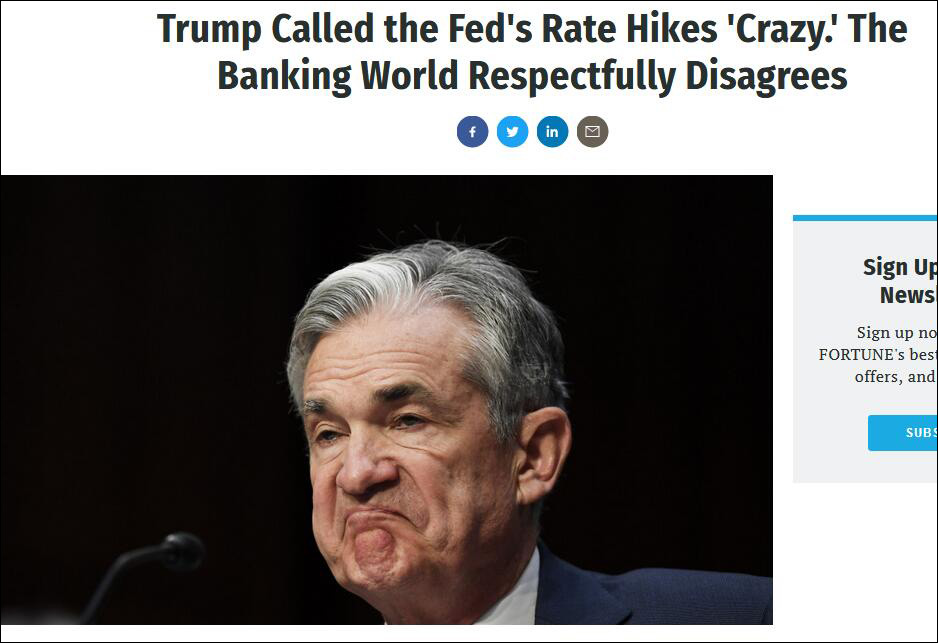 早在9月26日美联储货币政策会决定今年第三次加息25个基点后,特朗普即表示,对美联储加息感到不高兴,“我是一个低利率支持者”。