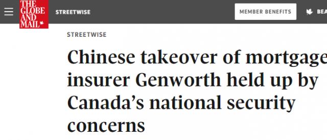 一间中资企业三年前宣布收购北美房贷按揭保险商的计划,但是因为加拿大政府的国家安全担忧,交易至今尚未获批准。