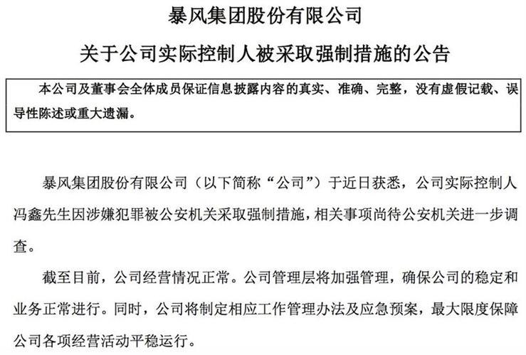 7月28日晚间,暴风集团发布公告称,公司于近日获悉,公司实际控制人冯鑫因涉嫌犯罪被公安机关采取强制措施,相关事项尚待公安机关进一步调查,并强调,截至目前,公司经营情况正常。