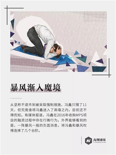 从坚称不退市到被采取强制措施,冯鑫只隔了11天,但究竟谁将冯鑫送入了高墙之内,目前还不得而知。有媒体报道,冯鑫在2016年收购MPS项目的融资过程中存在行贿行为。