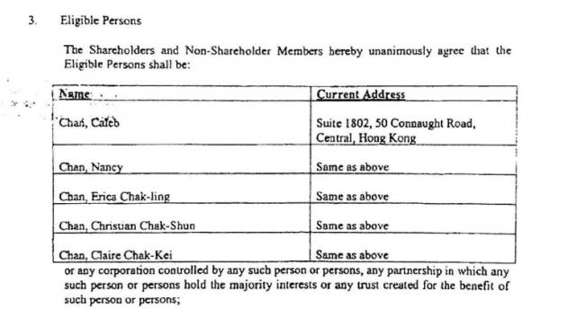 马恩岛的文件显示,陈氏的离岸公司已经在2012年关闭,所有文件都被下令销毁。不过陈氏兄弟的律师Daniel Reid表示,陈氏兄弟对此并不知情。递交给法庭的毕马威文件上的表格显示,陈氏兄弟指定了他们自己、配偶和子女作为“礼物”的接收人。