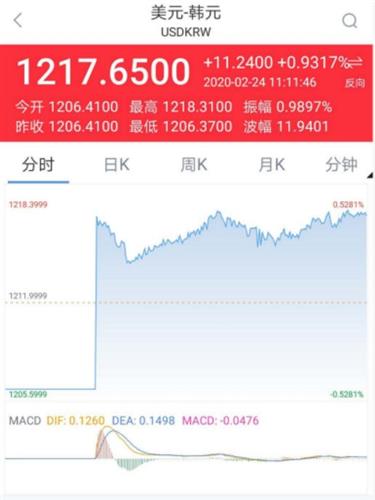 2月24日,韩国首尔综合指数KOSPI开盘大跌2.3%,报2114.04点。随后指数一路暴跌,跌幅扩大至3%以上。当天,韩元兑美元汇率盘中一度下跌0.8%,至1218.35,为8月以来最低。