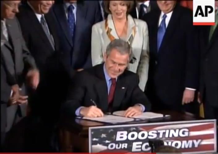 美国前总统布什签署《经济刺激法案》 图片来源:Youtube视频截图