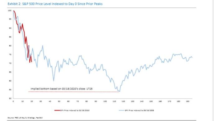 Calvasina在一份报告中写道:“标准普尔500指数最近的价格走势,以及美联储在周末的激进举措和紧急呼吁,使我们想起了金融危机时期最糟糕的日子。”“如果标准普尔500指数继续沿着这个趋势走下去,它将跌至1725点附近。”