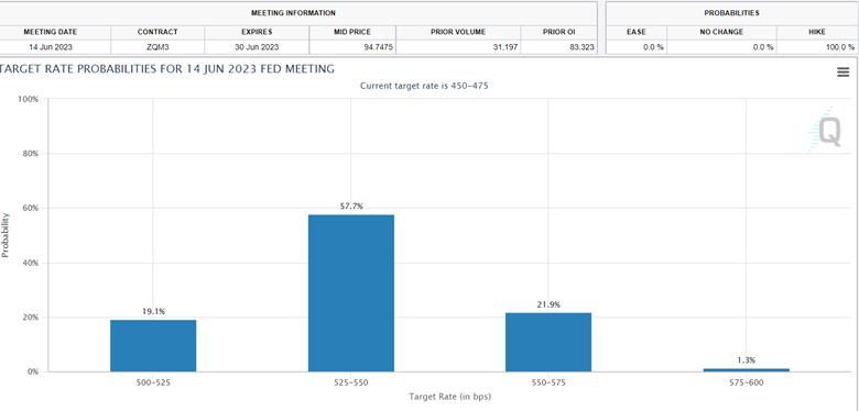 利率期货数据显示,目前市场预计美联储3月加息50个基点的概率上升至25%以上;同时,预计美联储6月将把政策利率提高至5.4%的概率超过50%,这意味着未来3次会议内或累计加息75个基点。