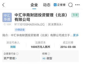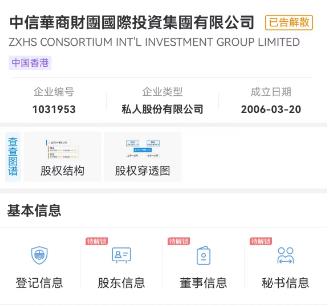 中新财经还以“华商财团”为关键词通过企查查APP进行搜索,出现“中汇华商财团投资管理(北京)有限公司”、“中信华商财团国际投资集团有限公司”两项最为相关的结果。前者为注册资本1000万元人民币的小微企业,后者则被标注“已告解散”。