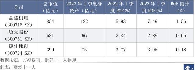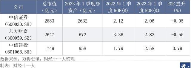 2022年一季度样本公司的ROE中值为0.82%,均值为0.67%;2023年一季度样本公司ROE中值为1.38%,均值为1.49%。ROE中值、均值分别提升68.3%,122%。样本公司中,截止2023年3月31日,市值最高的三家公司的情况如下: