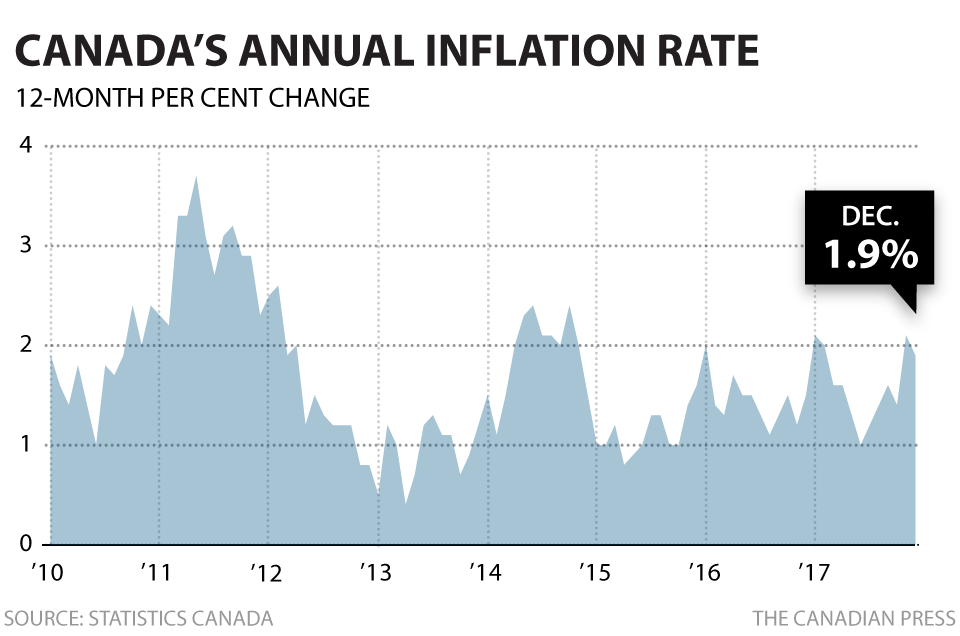 加拿大的通货膨胀率在去年12月下降至 1.9%,去年11月份的通货膨胀率为 2.1%,新出来的数据与大多数经济学家们的估测一致。