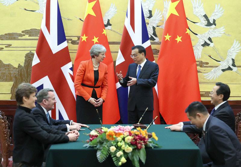 “正如您所说,现在确实是最好的时机。”特雷莎·梅回应道,“我愿利用此访进一步提升进入‘黄金时代’的英中全面战略伙伴关系。”