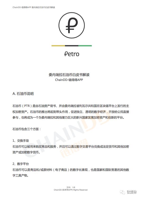 此外在委内瑞拉“石油币”白皮书中,经链得得APP翻译,提取出了几个重要部分。